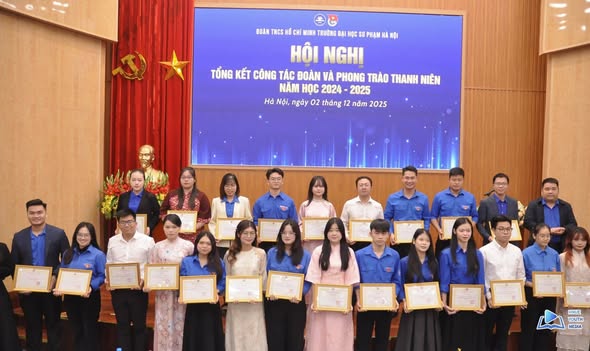 1. Đồng chí Đinh Hoàng Dương - Phó Bí thư Đoàn trường ĐHSP Hà Nội khoá XXI, Chủ tịch HSV Việt Nam trường ĐHSP Hà Nội nhận bằng khen của Trung ương Đoàn về khen thưởng công tác Đoàn và phong trào thanh niên năm 2024 - 2025
